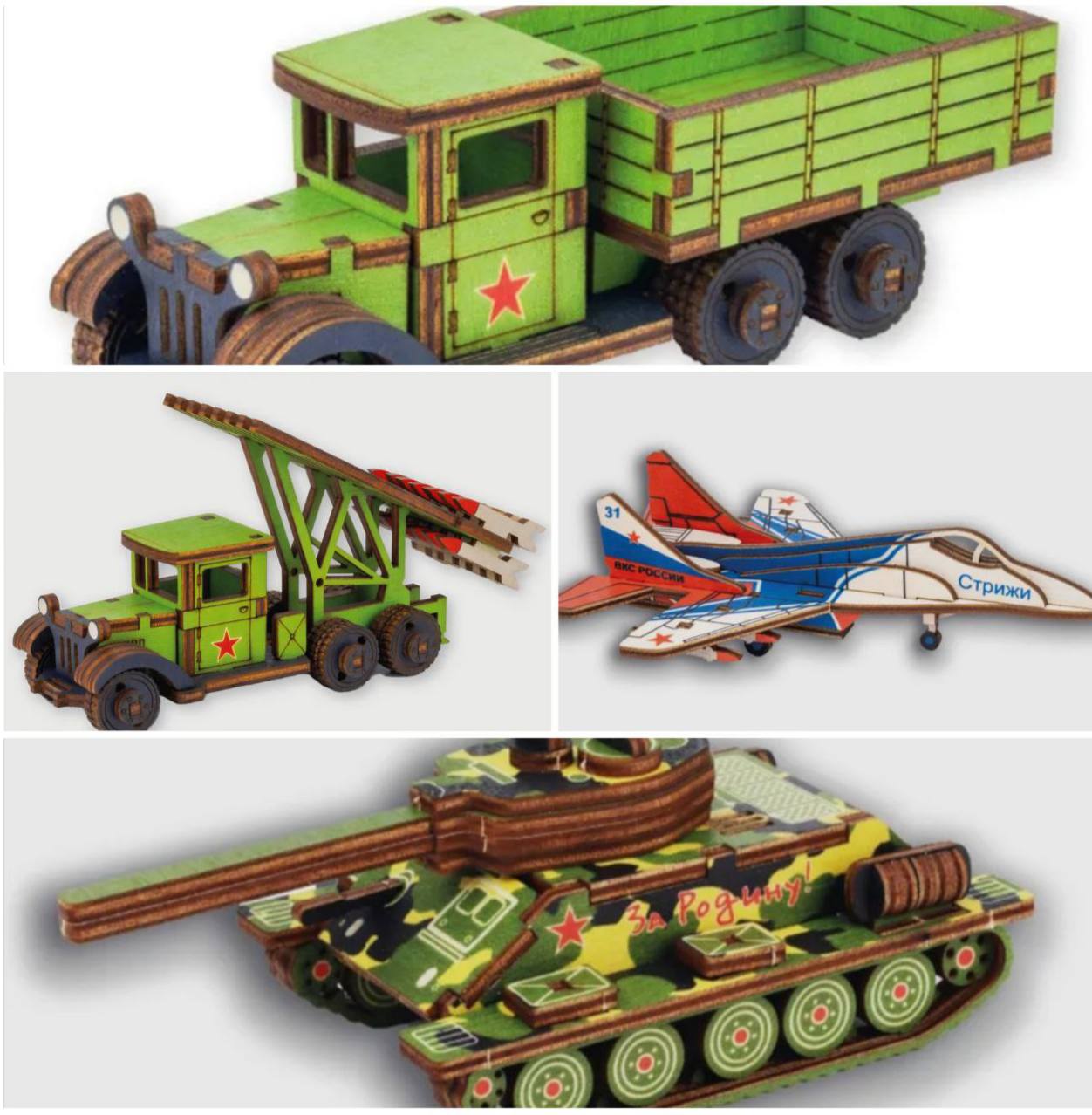 С 20 по 22 февраля приглашаем вас на увлекательный мастер-класс по сборке деревянных моделей отечественной военной техники: танк, самолет, грузовик. Можно будет выбрать одну из моделей, собрать и дополнить её акрилом!