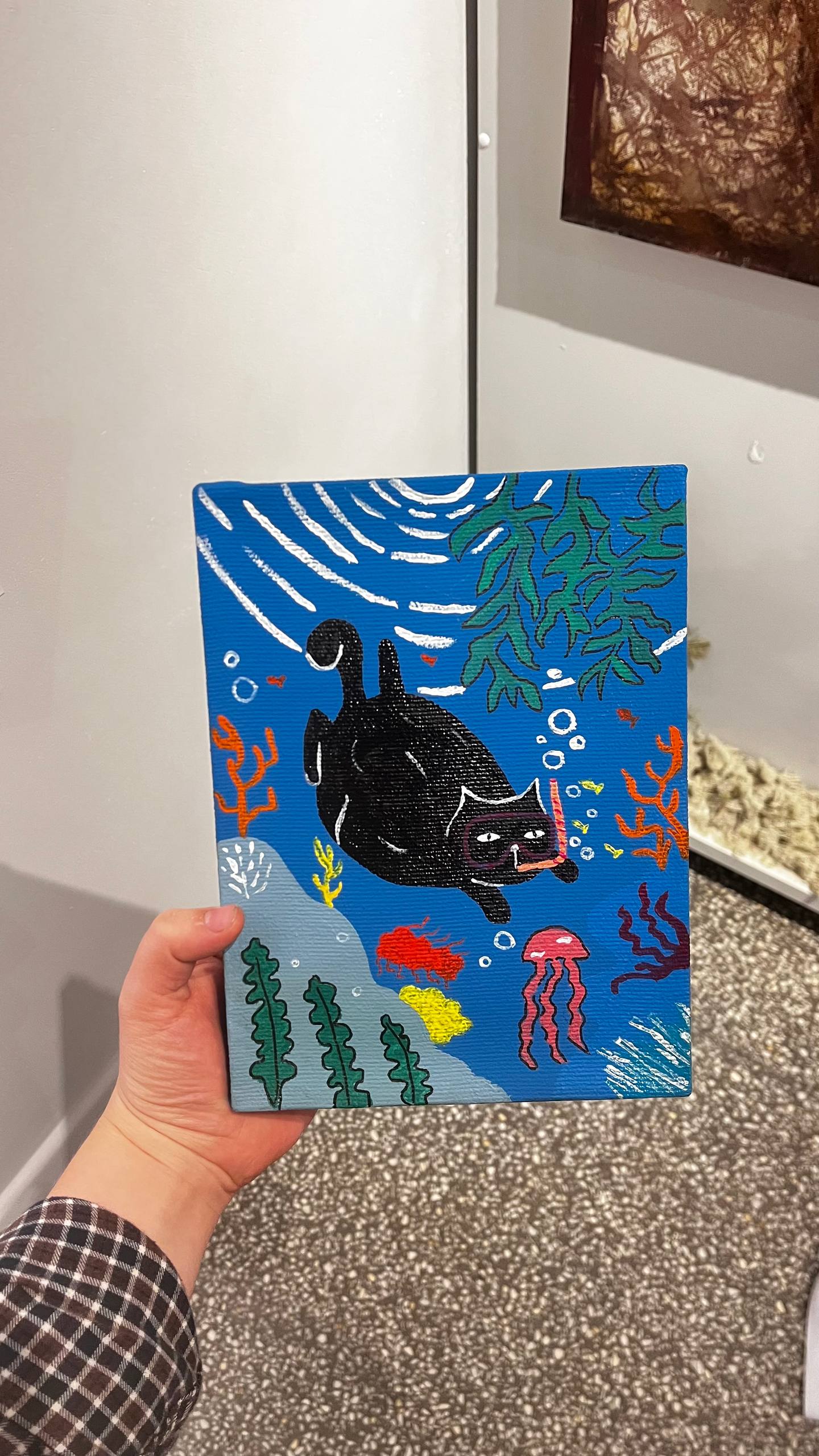 Будем писать котика который изучает подводный мир!